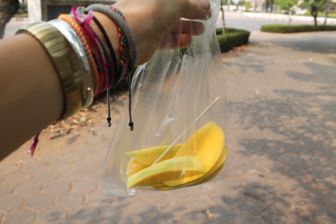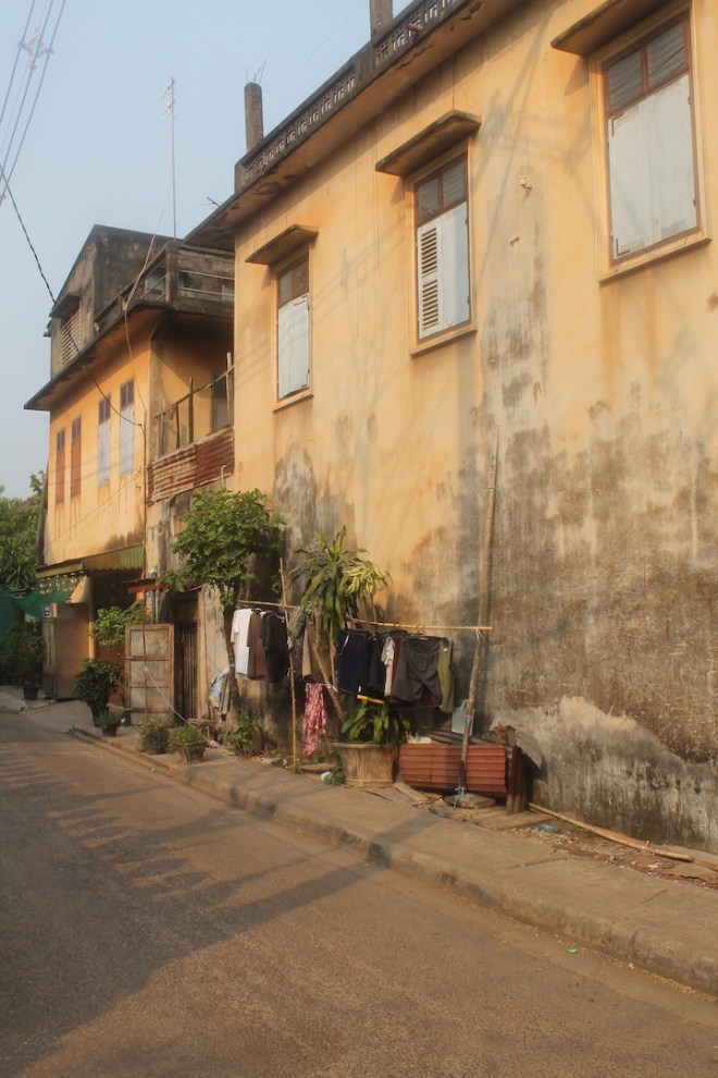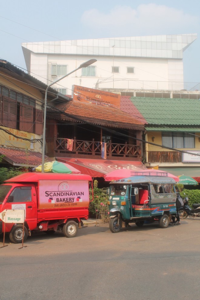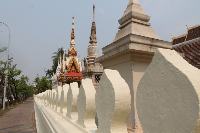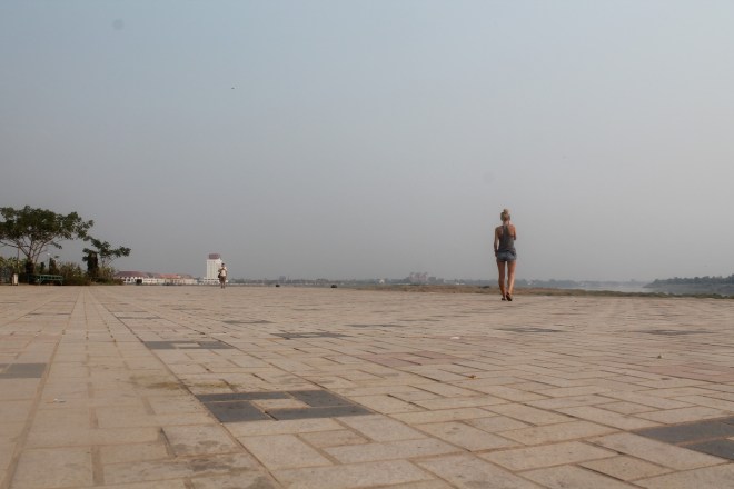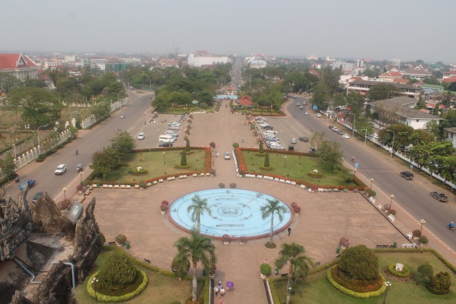 Eine Erleuchtung kam in Vientiane ziemlich schnell – hier lohnt es sich nicht zu bleiben. Die Stadt macht einen recht internationalen Eindruck, viele westliche Geschäftsleute, gute Restaurants – Großstadt eben. Vielleicht vergleichbar mit Frankfurt. Hochhäuser, Anzüge und sonst nichts. Außer vielleicht das beste Frühstück seit langem. Ich bin durch die Straßen geschlendert bei gefühlten 40 Grad und hab mir das einzig sehenswerte angeschaut: den Triumphbogen und einen Tempel. Und in meiner verschwitzen Planlosigkeit habe ich dann beschlossen noch am Abend mit dem Nachtbus nach Don Det/4000 Islands zu fahren. Koste es was es wolle und wenn es sich die lange Anreise nicht lohnen sollte, hatte ich zumindest Gewissheit.