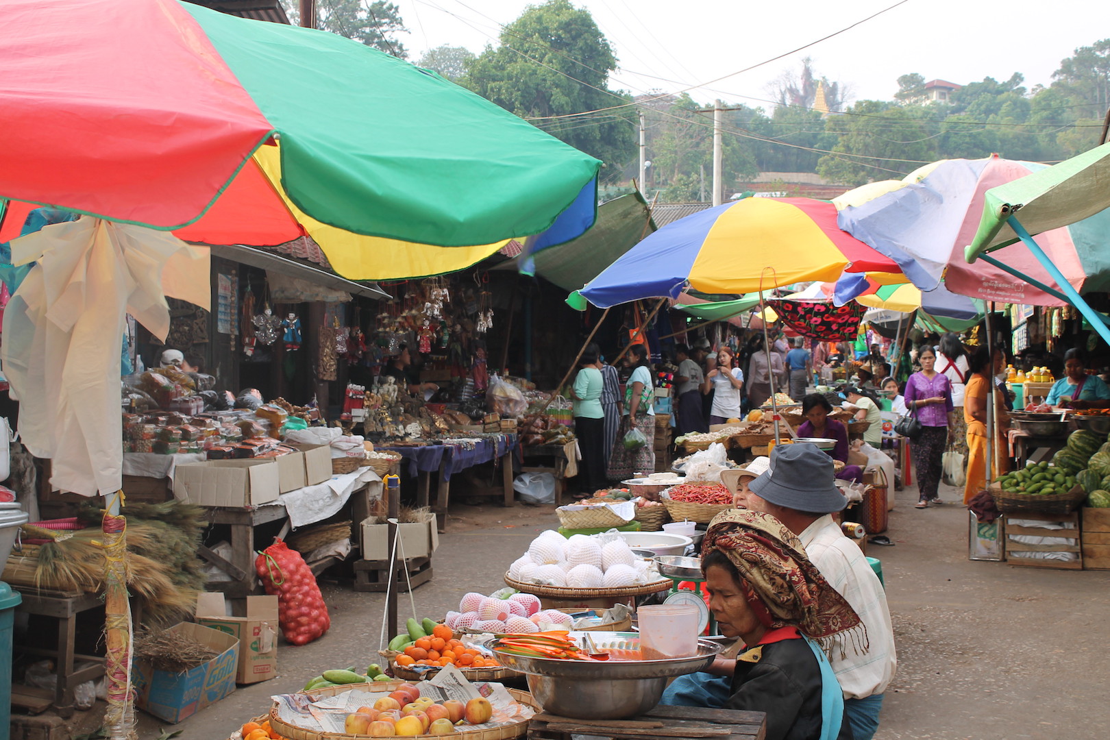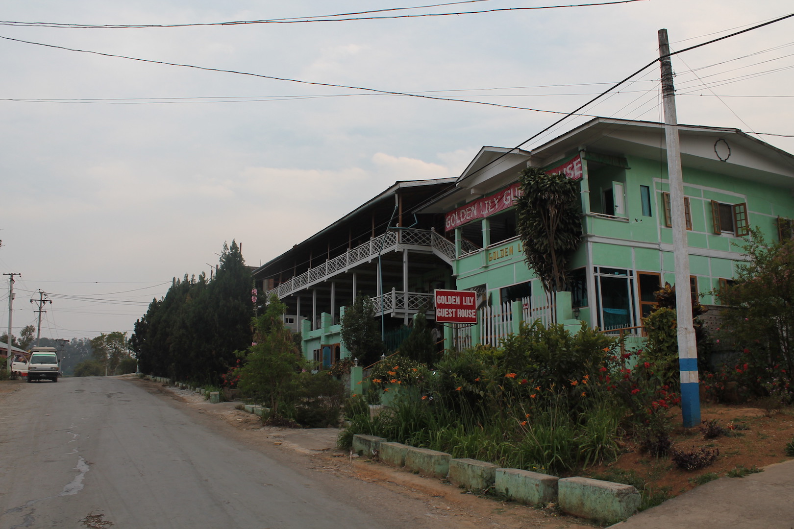 Wir sind also wieder mit einem Taxi gefahren, dieses Mal nach Kalaw. Das liegt wieder ca. 200 Kilometer von Mandalay entfernt, aber südöstlich und somit wieder mehr in Richtung Yangon, von wo aus wir Myanmar in einer Woche wieder verlassen sollten. Die Fahrt war ähnlich beengt und langatmig – aber wir kamen schneller voran und erreichten die kleine Stadt Kalaw zur Mittagszeit. Unser Fahrer war sehr bedacht darauf, uns einem speziellen Hotel unterzubringen. Vermutlich gehört dieses einem Verwandten, das Zimmer gefiel uns aber nicht. Darüber hinaus wollten wir Kalaw als Basis nutzen um von hier aus einen mehrtägigen Trek zu starten, im Idealfall hatten wir uns vorstellt wird dies direkt vom Hostel organisiert.