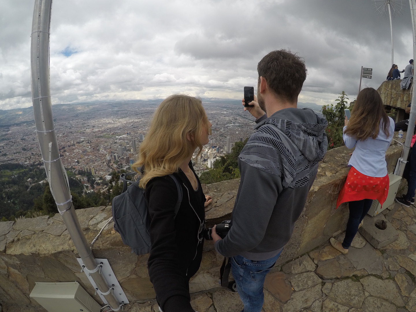 Am nächsten Tag fuhren wir auf den Monserrate – der Hausberg von Bogota. Mit dem Taxi fährt man bis zu Seilbahn Station und steht dann 3.152m über dem Meer und über der acht Millionen Stadt. Und erst dann wurde uns das Ausmaß der Stadt bewusst, bis zum Horizont sieht man die Häuser auf dem Plateau reichen. Und hier oben merkt man die Höhe nach ein paar Treppenstufen extrem. Wir waren sehr beeindruckt von dem Blick und nachdem wir gestern eigentlich gar keine Touristen gesehen hatten, waren wir nun mittendrin.