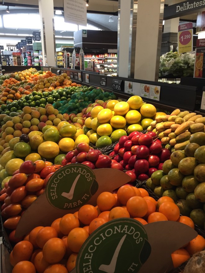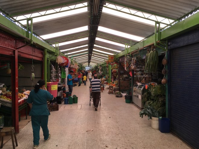 Unser erster richtiger Eindruck von der Stadt war, dass es sich eigentlich nicht viel anders als eine Großstadt in Spanien oder Italien anfühlt. Wir waren positiv überrascht wie wenig „fremd“ sich die Stadt anfühlt. Von der Höhe, die Stadt liegt auf 2.640m Höhe – merkten wir nur beim bergauf gehen ein wenig was. Das Klima insgesamt war total angenehm, Sonnenschein, blauer Himmel und entspannte 16°C. Im Supermarkt war ich hellauf begeistert, von der Obstauswahl. Zum ersten Mal wurde uns bewusst, dass wir über das Land im Vorfeld wirklich wenig erfahren haben, aber klar Kolumbien kann das meiste Obst und Gemüse aufgrund des vielfältigem Klimas selbst anbauen und dementsprechend üppig war die Auswahl. Ein paar spannend aussehende Sorten, die wir nicht kannten, mussten wir zum probieren mitnehmen.