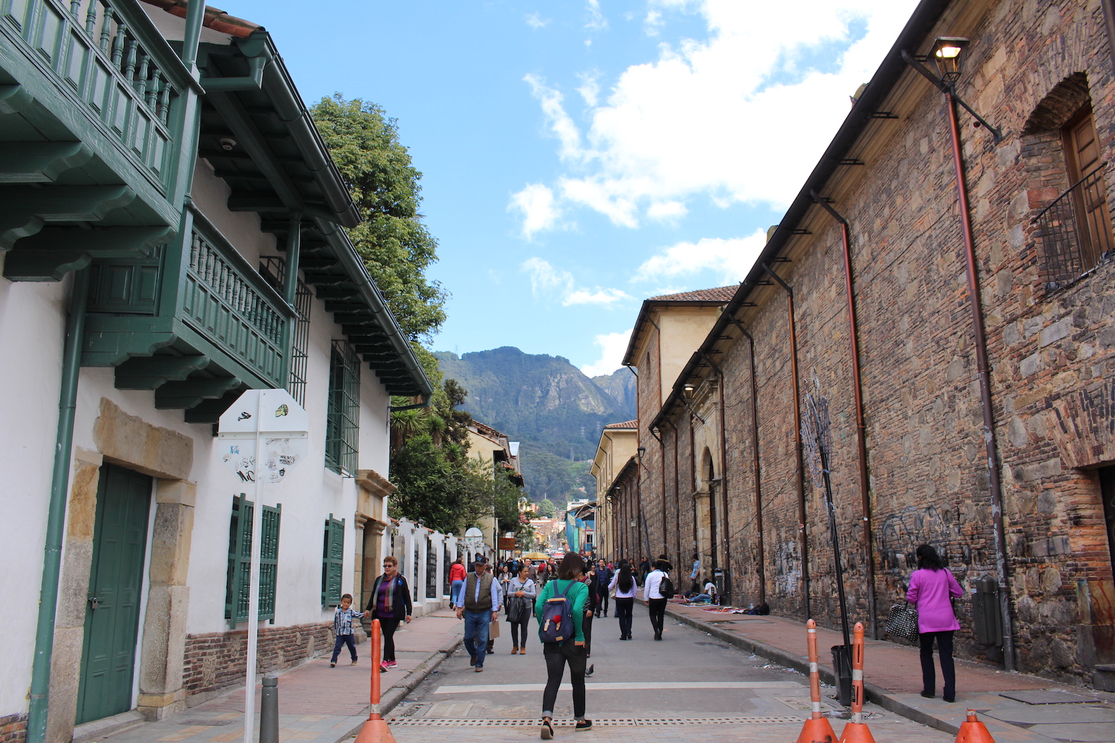 Nach der Abfahrt mit den Funicular (eine Standseilbahn) liefen wir den restlichen Weg in die Stadt und waren wieder sehr positiv überrascht von dem Stadtbild. Bogota ist bunt – bunt voll aufwendiger, liebevoller und beeindruckender Streetart. Graffitis sind seit ein paar Jahren legal und überall in der Stadt finden sich wirklich tolle Bilder. Wir hätten gerne noch eine Street Art Tour gemacht. Leider hatten wir nur noch Zeit um uns die Innenstadt bzw. Altstadt anzuschauen. Auf den Plaza de Bolivar schauten wir dem leicht dubiosen Treiben der Straßenkünstler, grimmig dreinschauenden Männer und Touristen zu. Die Altstadt ist quadratisch aufgebaut, leicht abzulaufen und bietet immer wieder tolle Blicke auf dem Montserrate.
