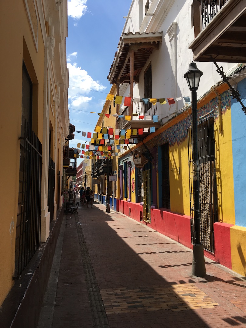Die Stadt hat eine bewegte Geschichte, da sie ein wichtiger Hafen für die spanische Flotte zum Handel z.B. mit Waffen und Gold aber auch für den Handel mit Sklaven war und oft von Piraten angegriffen wurde. Neben dem etwas poliertem Stadtkern, gibt es noch das Viertel Getsemani. Hier finden sich eher nicht die Reisegruppen mit beigen Hüten, sondern eher die Backpacker und das Nachtleben. Unter anderem gibt es hier eine Bar, in der auch Hillary Clinton feierte. Die Häuser sind etwas authentischer und man findet auch wieder mehr Graffiti Kunst an den Wänden.