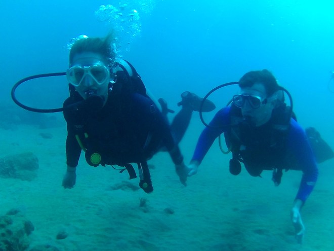 Die Unterwasserwelt ist hier längst nicht so farbenfroh wie in Asien, wir genossen die Zeit in der Unterwasser-Schwerelosigkeit dennoch sehr. Unser Divemaster zeigte uns unermüdlich einen Oktopus, Hummer, diverse Fische, eine Schlange, Wasserspinnen und hatte ein gutes Auge für Moränen, die sich im Sand versteckten. Auch der zweite Tauchgang war eine schöne, entspannte Erfahrung und die Begeisterung ist wieder neu entfacht.
