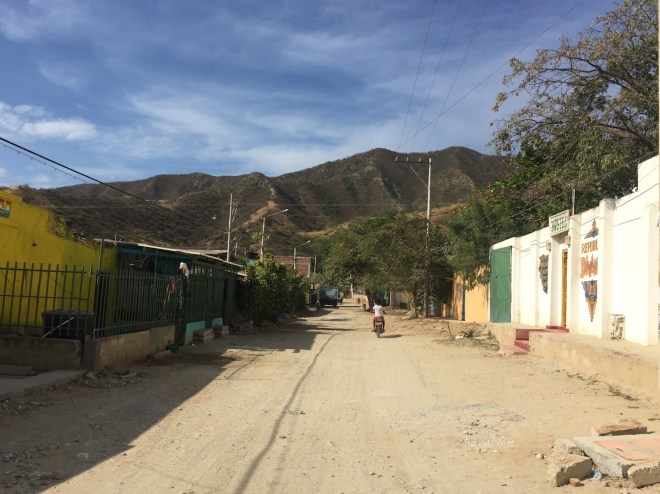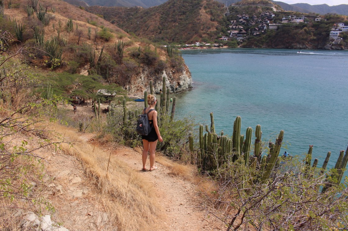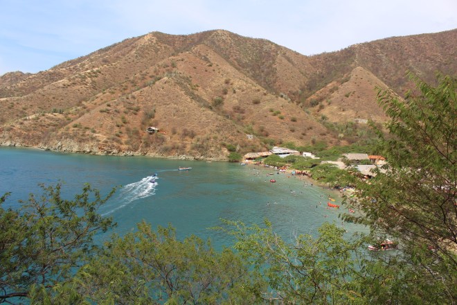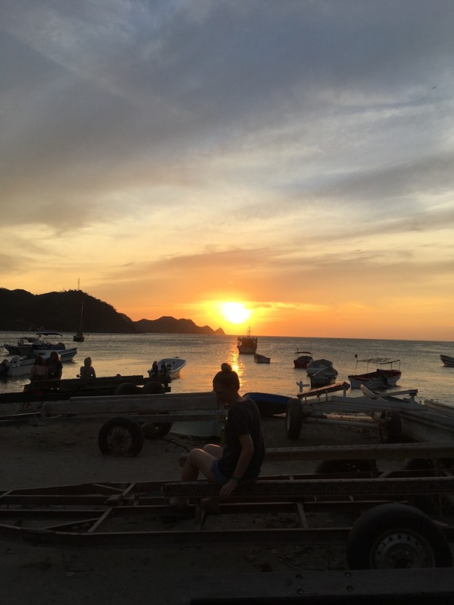 Die ersten zwei Tage hier verbrachen wir an verschiednen Ständen. Zum einen, an dem Strand direkt im Ortskern; nett, viele Restaurants und Händler. Und an einem ablegenden Strand – ein kleiner Hike entfernt. Unterwegs kamen wir an dem eigentlichen Hauptstrand vorbei. Hier verbringen die Kolumbianer aus Santa Marta auch gerne den Tag und kommen mit Booten an, es herrscht eine Stimmung wie im Freibad an einem heißen Augusttag. Den abgelegene Strand names „Sisiguaca“ erreicht man nach einem halbstündigen Spaziergang durch Kakteen und staubige Trampelpfade. Der Strand ist winzig und wurde von Fischern belagert, die Netze sortierten. Die Nachmittage verbrachten wir am Hostelpool und schauten den Sonnenuntergang von den ausrangierten Fischerbooten aus.