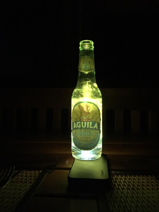 Taganga hat keine besonders gut ausgebaute Infrastruktur: es gibt nur einen Geldautomaten, keinen Supermarkt, nur die Kioske, die eher wie Tante-Emma Lädchen funktionieren, hauptsächlich staubige Straßen und zwei Blocks, die man besser nicht betreten sollten und vor allem ein brüchiges Stromnetz. Im Laufe der Tage fiel der Strom immer mal wieder kurz aus. Beim Abendessen fiel der Strom dann mal für eine gute halbe Stunde aus, wir behalfen uns mit einer Bierflasche über der Handytaschenlampe, um Andis hervorragende Filet Mignon auch im Dunkeln zu finden. Die Kellnerinnen fingen kurz danach routiniert an, Kerzen aufzustellen und als der Strom wieder anging, ging ein lautes Raunen durch den Ort.