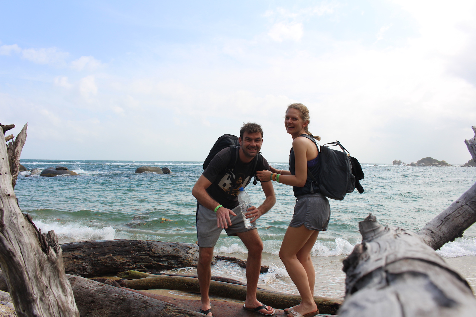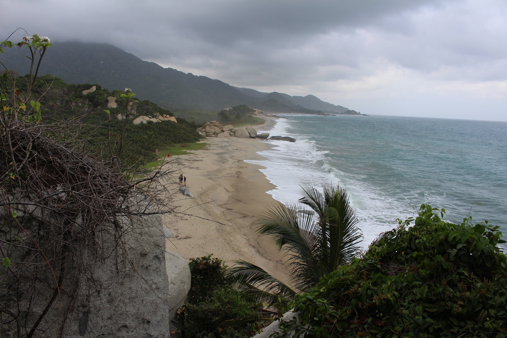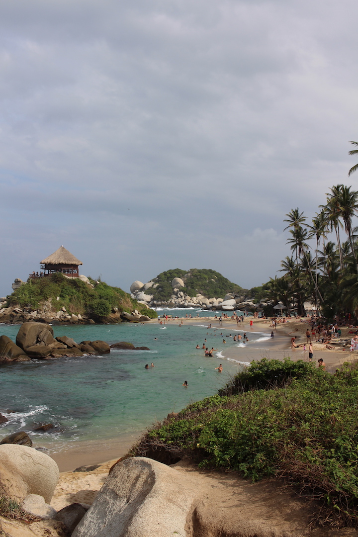 Tagsüber waren wir an den verschiedene Stränden, die der Park zu bieten hat. Der berühmteste Strand ist der an unserem zweiten Campingplatz names „Cabo San Juan“; wenn man Bilder von Kolumbiens Karibikküste sucht, findet man mit hoher Wahrscheinlichkeit auch ein Bild von dieser Bucht. Die Natur im Park ist wirklich beeindruckend, ein dichter Urwald, palmungesäumte Strände und unwirkliche Steinformationen. Aber grade in Cabo San Juan ist der Strand für die Touristenhorden nicht ausgelegt, man liegt Handtuch an Handtuch und die Lifeguards pfeifen unermüdlich Leichtsinnige aus dem Wasser, die zu weit rausschwimmen.